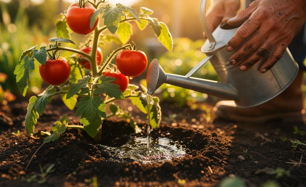 - 🍅 Gießen von oben vermeiden: Das Beregnen der Blätter fördert Pilzkrankheiten wie Kraut- und Braunfäule, da die Blätter zu lange nass bleiben.