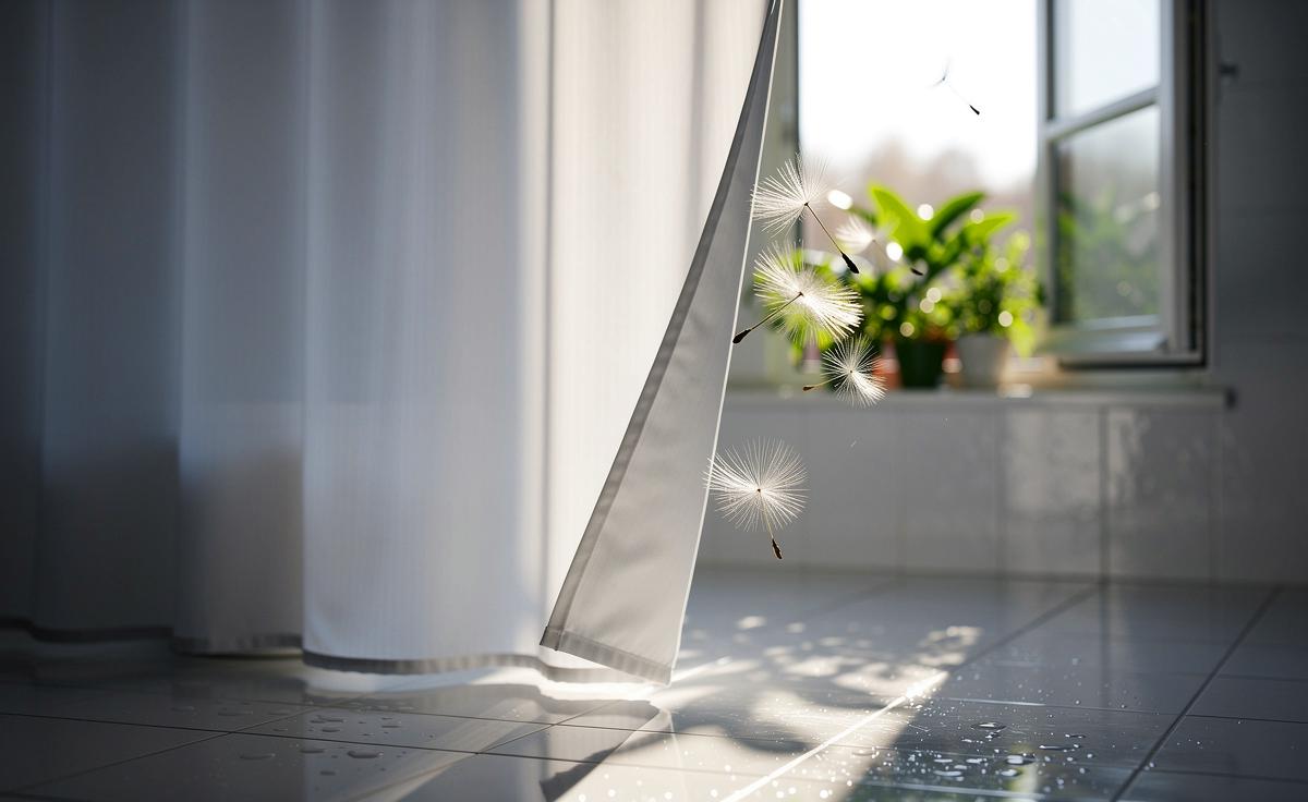 - 💨 Der einfache Trick: Den Duschvorhang nach dem Duschen glatt ausgebreitet hängen lassen und durch Öffnen von Fenster und Tür für Durchzug sorgen, um die Trocknung zu beschleunigen.